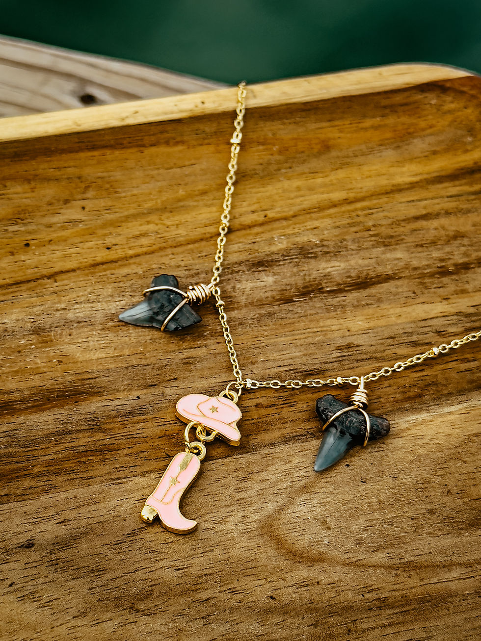 Salty Jade Custom Jewelry is handmade on the shores of North Carolina using real shark teeth found right here on the North Carolina Coast. Every piece is one-of-a-kind, just like the treasures the tide brings in. Made with tarnish-resistant materials and a deep love for the ocean, this jewelry is for anyone who feels at home by the sea.